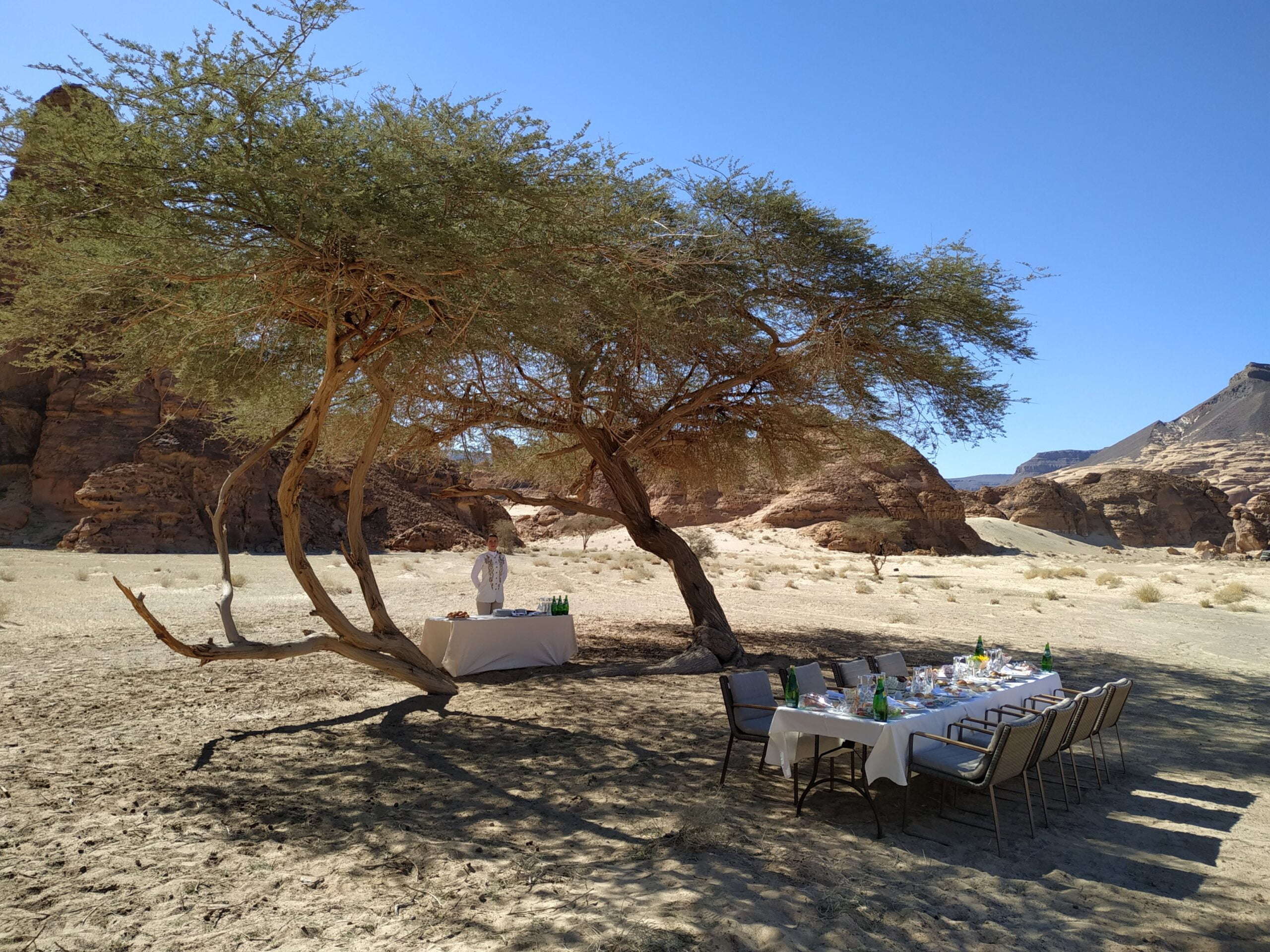 A meal in the middle of the desert in a royal camp in the middle of a breathtaking location surrounded by mountains and a recital at the Maraya completed this unique experience.